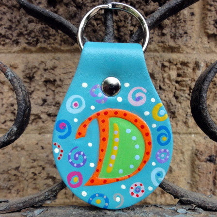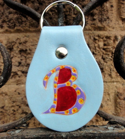 The leather key fob is hand-tooled and painted with acrylic paint. A colorful way to organize your keys!