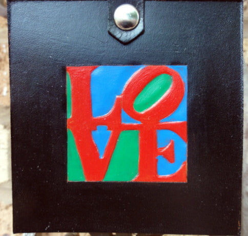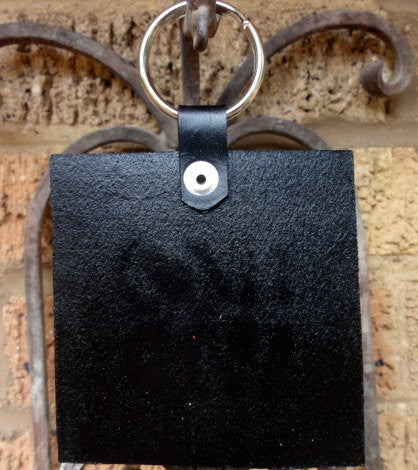 This a is larger key fob, that some people prefer. The square is 3 1/4". It is hand-tooled and painted with acrylic paint.