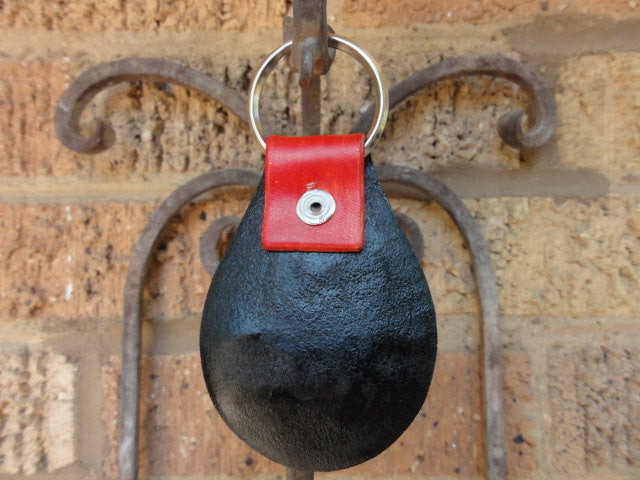 The leather key fob is hand-tooled and painted with acrylic paint. A colorful way to organize your keys!