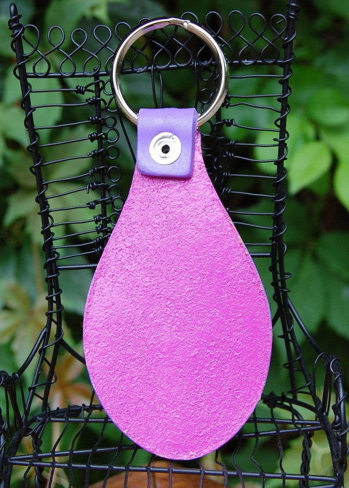 The colorful flower is hand-tooled and painted with acrylic paint. It is finished with a coat of protective sheen. This one is an longer than most; its dimensions are 5" x 2 1/8" at its greatest width.