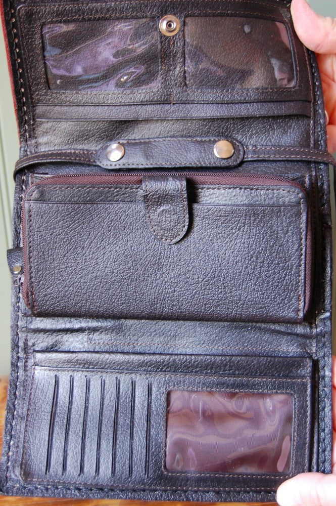 Inside there are at least 14 compartments for organizing ID, credit cards, money, checkbook or even a small cell phone.