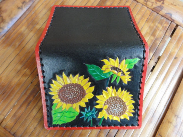 For Sunflower lovers! The ID case is hand-tooled, painted with durable acrylic paints, and finished with a protective sheen. The ID case measures 4" x 3 1/4", closed.